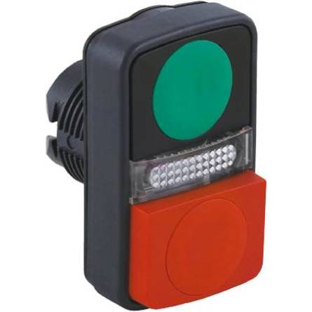 Der Drucktaster verfügt über eine flache und eine vorstehende Ausführung, die es ermöglichen, im Abstand deutlich zwischen den Tasten zu unterscheiden, um Fehler in der Maschinensteuerung zu minimieren. Mit Abmessungen von 30x50x35 mm und einem Montagedurchmesser von 22 mm ist das Frontelement kompakt und passt in viele Anwendungen. Das geringe Gewicht von nur 0,023 kg erleichtert die Installation und Handhabung.